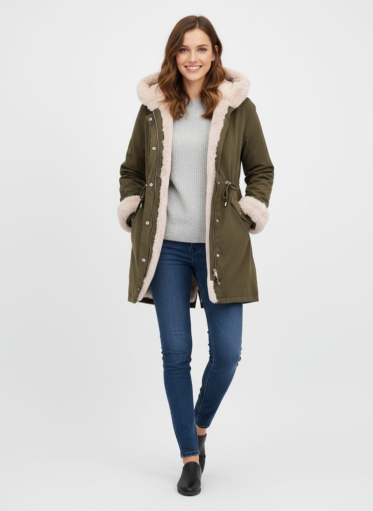 - odepínatelné kožešinové lemy na rukávech