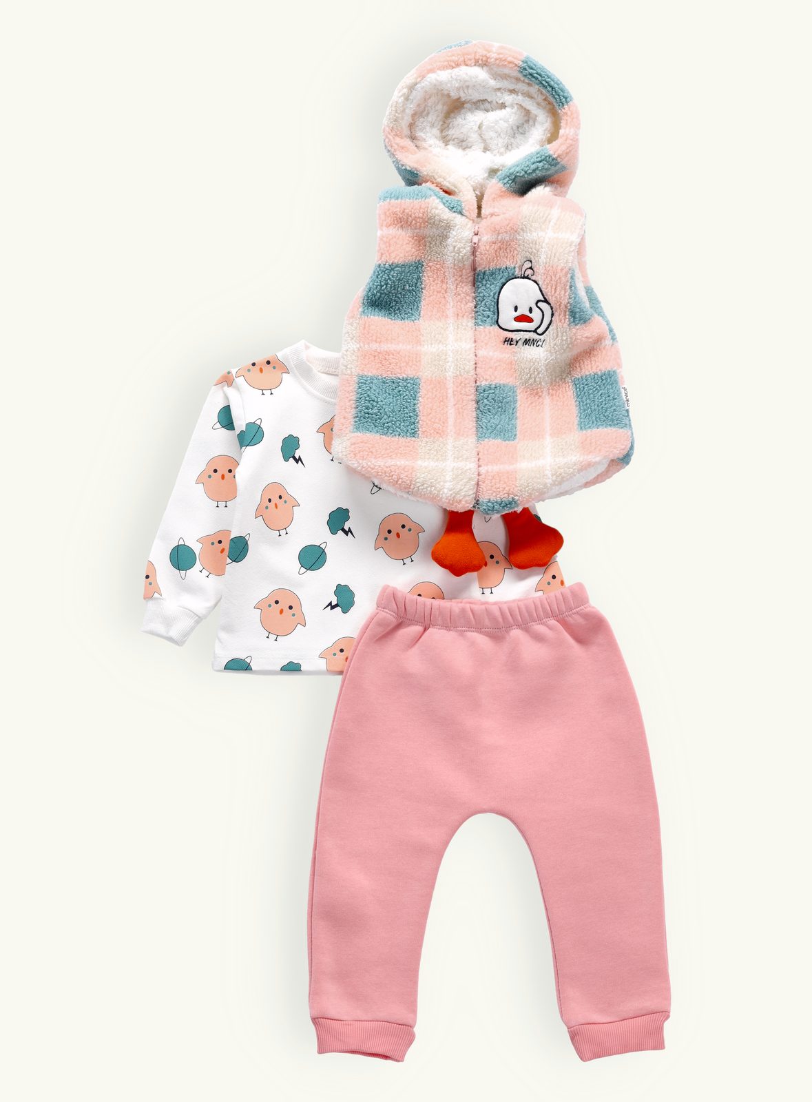 - vesta: plyšová s hřejivou podšívkou, zapínání na zip, nášivka s motivem kačenky