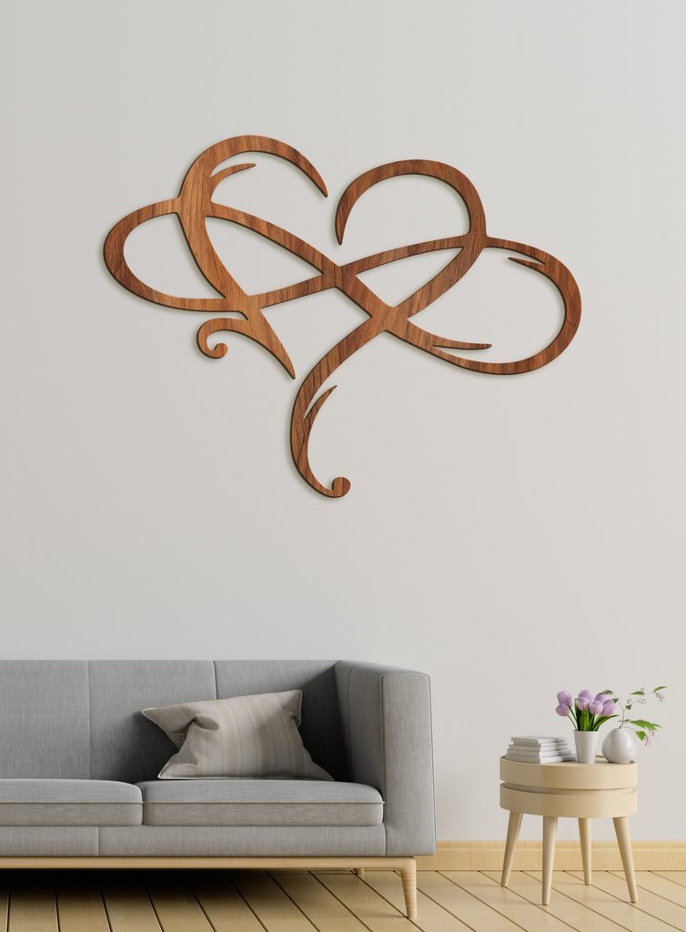 Představte si symbol nekonečna elegantně obepínající jemné srdce, jako by vám připomínal nekonečnou lásku a nekonečné pouto. Tento dřevěný obraz z HDF zobrazuje právě tento krásný motiv.