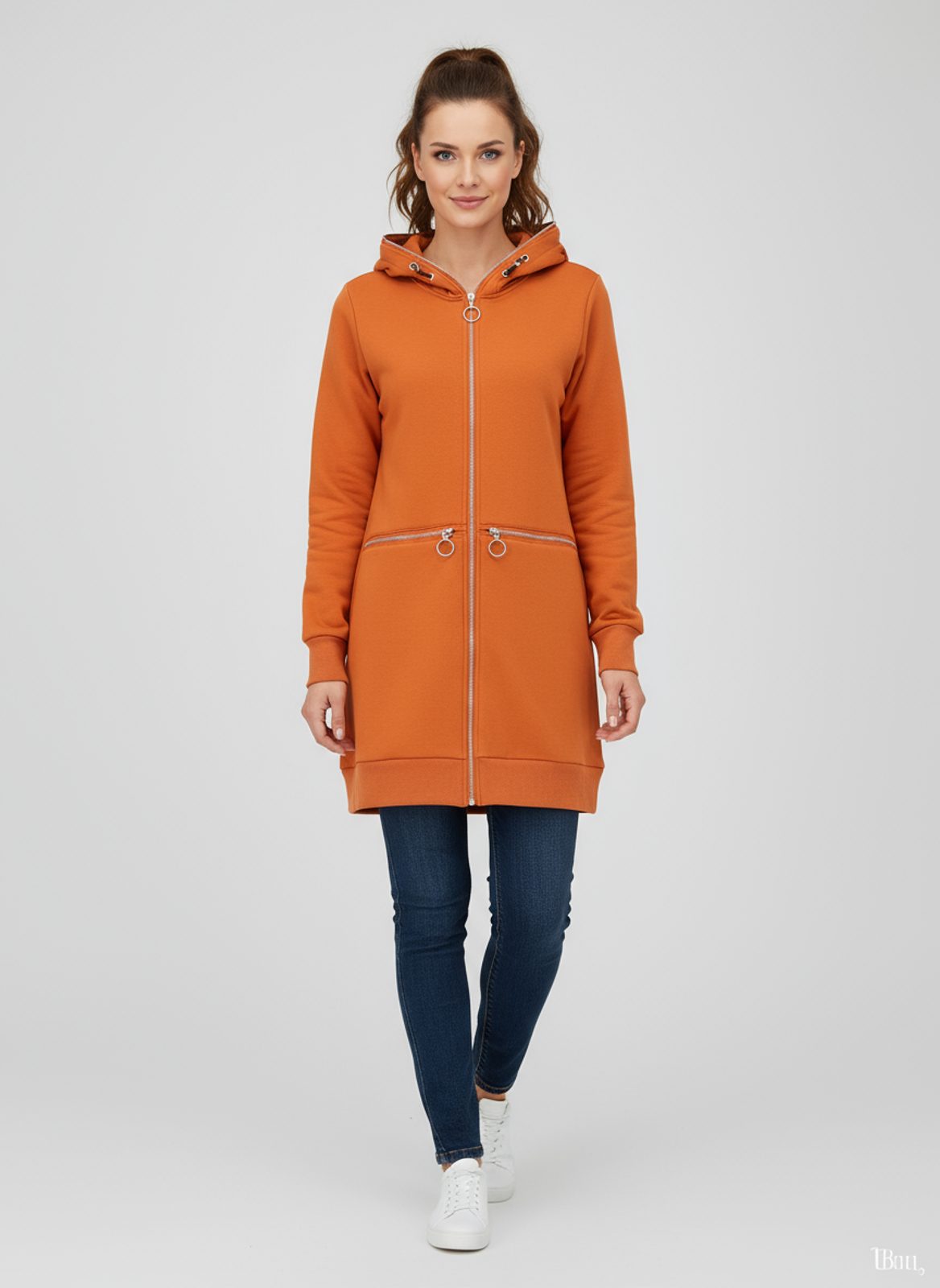Dlouhá dámská cihlová mikina