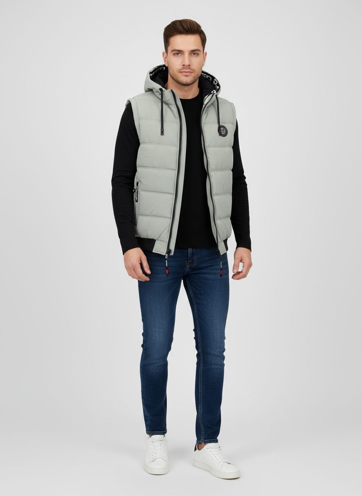 Pánská prošívaná vesta s kapucí světle zelená