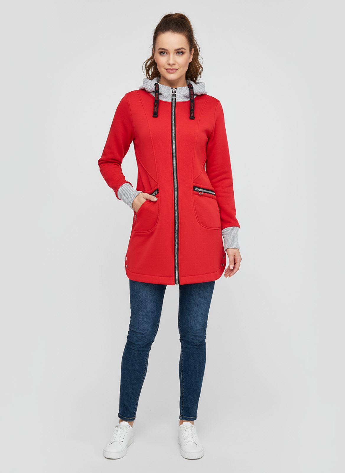 Červená prodloužená dámská mikina