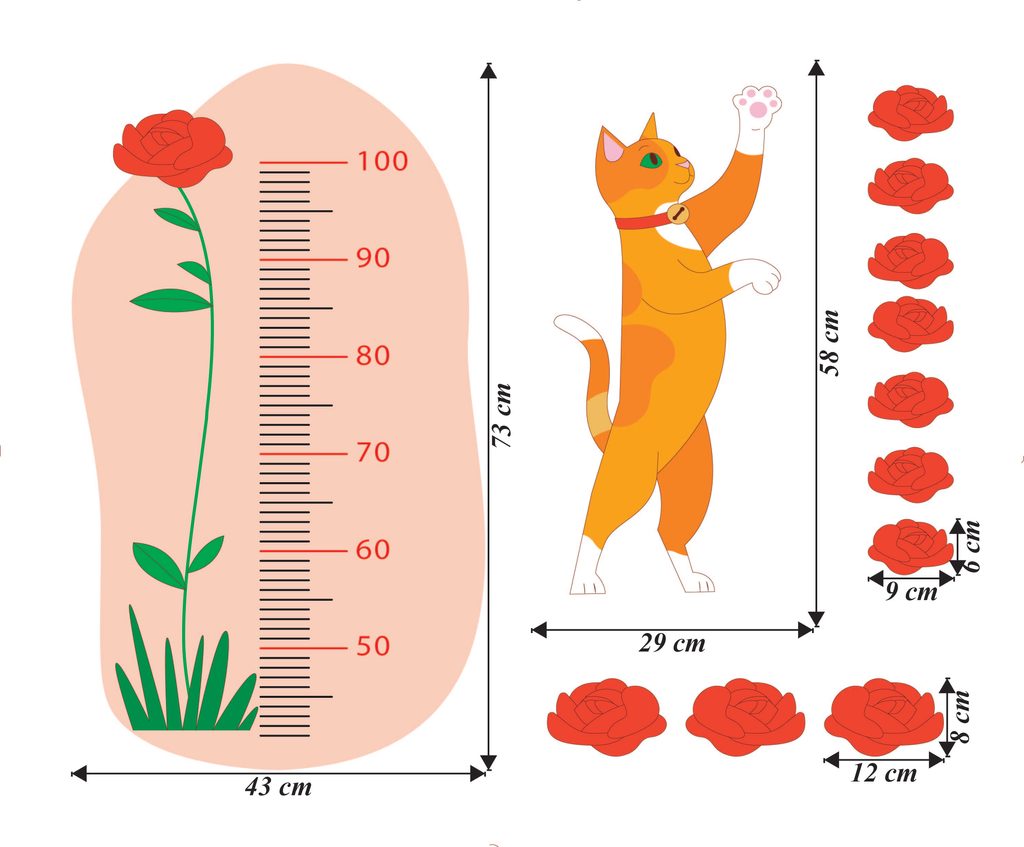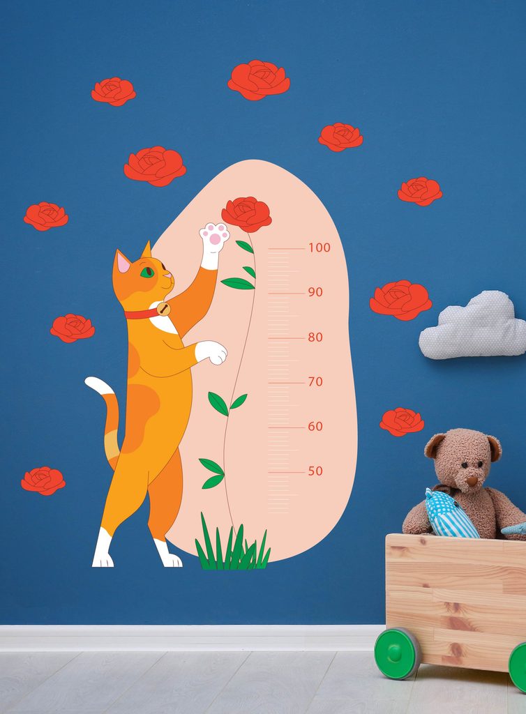Sledujte, jak vaše dítě roste s naší kouzelnou kočkou v náručí květin! Tento barevný a zábavný růstový metr je skvělým doplňkem do každého dětského pokoje.